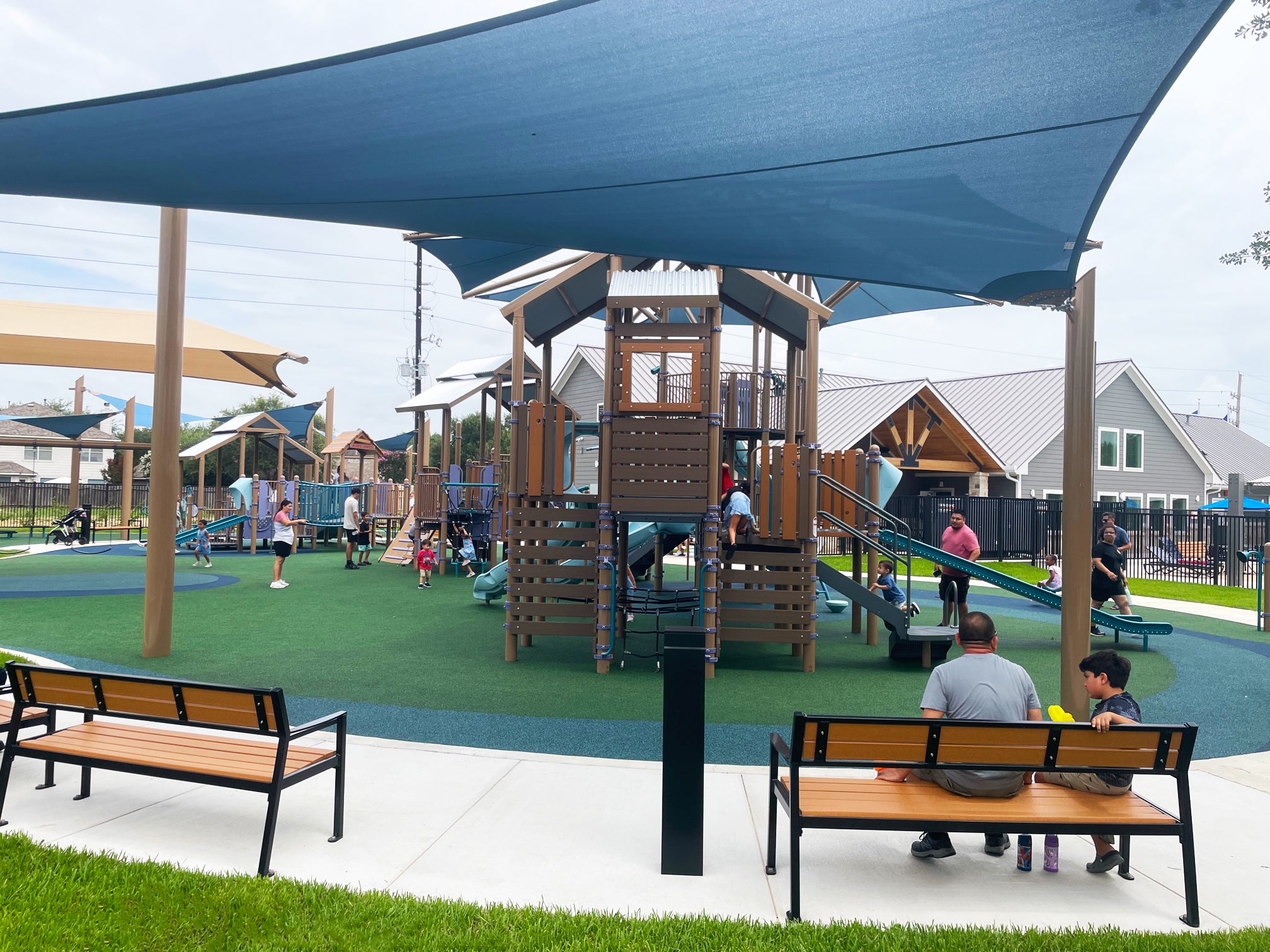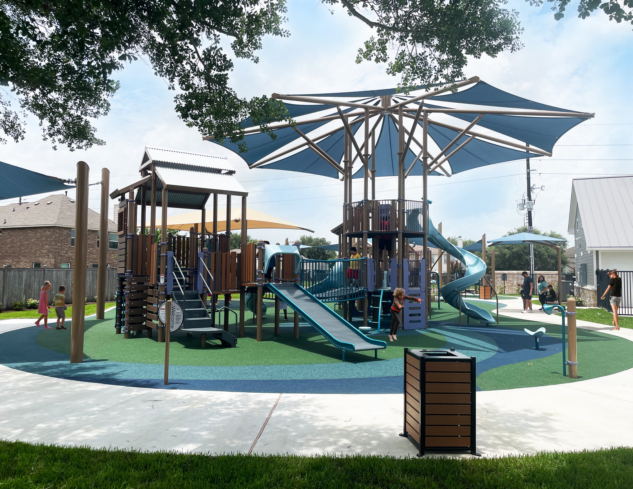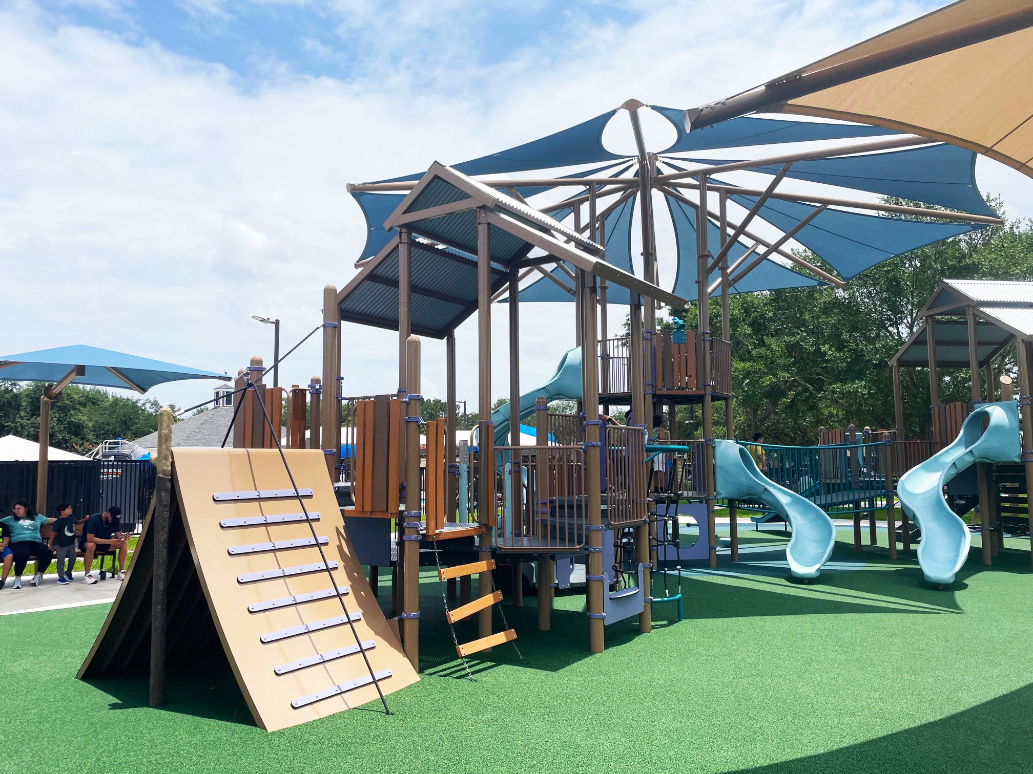 Families will appreciate the accessible, shaded play areas designed for children ages 2–12, featuring modern equipment that encourages imagination, movement, and safe play. The shaded design helps keep the play areas comfortable year-round and ensures accessibility for all children.